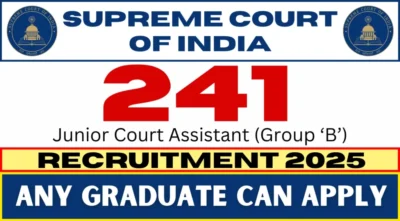The Supreme Court of India has officially released a recruitment notification inviting online applications for the post of Junior Court Assistant (Group ‘B’ Non-Gazetted). A total of 241 vacancies will be filled through this recruitment drive. Interested and eligible Indian citizens can apply online through the official website of the Supreme Court from 5th February 2025. The last date to submit applications is 13th March 2025.